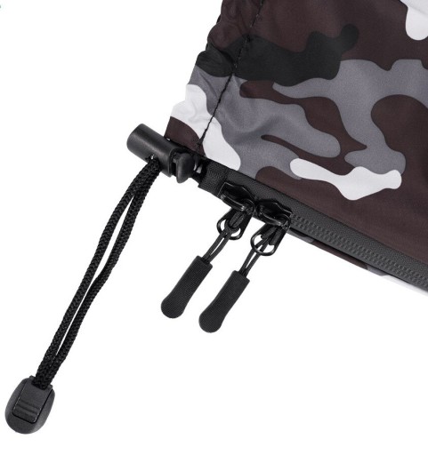 Zakładanie osłony przeciwdeszczowej jest szybkie i bezproblemowe, dzięki czemu możesz szybko reagować na zmieniające się warunki pogodowe, nie tracąc okazji do zrobienia zdjęcia. Wewnętrzne sznurki zapewniają bezpieczne trzymanie aparatu i obiektywu, dzięki czemu pozostają one stabilne i nieruchome, nawet w przypadku mniejszych aparatów i obiektywów. Osłona przeciwdeszczowa posiada rękawy po obu stronach, co zapewnia łatwy dostęp w celu dostosowania ustawień aparatu. Ściąganie sznurków w rękawach zapobiega przedostawaniu się wody do środka. Dodatkowo dwukierunkowy wodoodporny zamek błyskawiczny u dołu umożliwia kompatybilność ze statywami, zapewniając stabilne i bezpieczne fotografowanie nawet w trudnych warunkach pogodowych.