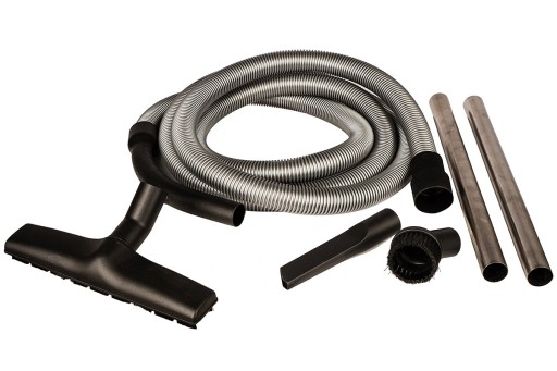 1x elastyczny wąż próżniowy (36mm x 4 metry) 1x stalowa wygięta rura ręczna 2x Rury przedłużające RVS o długości 50cm 1x dysza podłogowa 1x szczotka do rąk