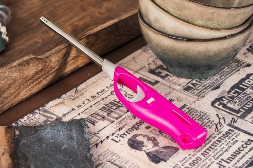 Zapalarka gazowa z długą lufą. Wyposażona w regulację płomienia, blokadę, przystosowana do ponownego napełniania. Idealna do zapalania gazu, świec, zniczy lub grilla.