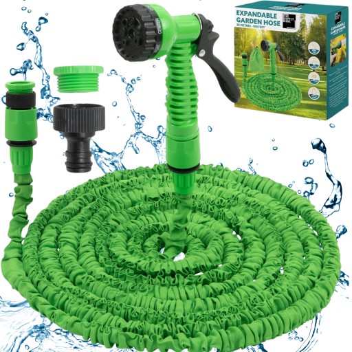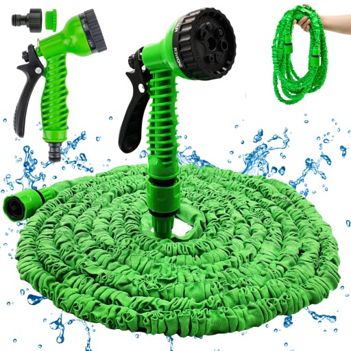 WĄŻ OGRODOWY ELASTYCZNY ROZCIĄGLIWY 20-60M + ZŁĄCZKI + PISTOLET 7 TRYBÓW