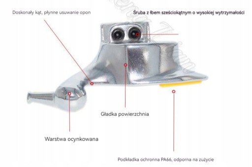 1. Jest to stalowa głowica montażowa i demontażowa z gumowymi podkładkami montażowymi stosowanymi w wielu montażownicach.