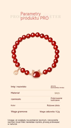 Серебряный браслет 925 пробы «Год Дракона» с мотивом желающего дракона