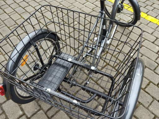 Rowerek elektryczny trójkołowy z niskim poziomem wejścia /250mm/ pozwala na wygodne użytkowanie nawet osobom z ograniczoną ruchomością kończyn dolnych. Rowerek trójkołowy wyposażony jest w silnik elektryczny zintegrowany w przedniej piaście o mocy 250W i maksymalnej prędkości wspomagania 25km/h. (maksymalna prędkość może być regulowana zgodnie z życzeniem klienta od 15 do 25 km/h). Akumulator Li-Ion (standardowo 36V/10,4Ah, 400Wh) umieszczono w tylnej osi pod dużym koszem. Ładuje się za pomocą dołączonej ładowarki, bezpośrednio na rowerze trójkołowym lub osobno. Panel sterowania wyświetla aktualną prędkość, dzienny i całkowity przebyty dystans. Wyposażony jest także w funkcję asystenta PUSH (pomoc przy pchaniu rowerka trójkołowego do prędkości 6 km/h). System wyposażony jest w 4 poziomy wsparcia, przy czym każdy poziom pomaga w określonej wydajności (tzw. regulacja mocy) do max. prędkość wsparcia.