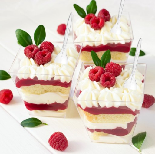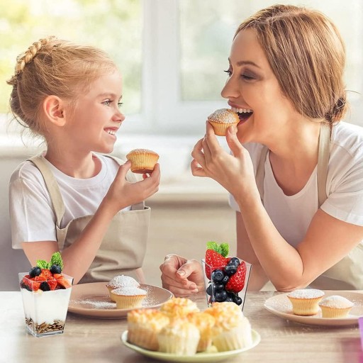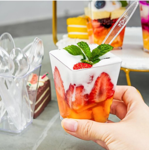 ✨Zestaw 70 el. kubeczki (pojemniki) PIRAMIDA 160ml + łyżeczki transparentne do podawania deserów, przystawek, przekąsek podczas przyjęć, degustacji, uroczystości.
