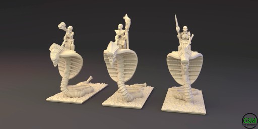 Snake Rider, Tomb Kings Army, Warmaster 10 mm – 3 modele, plus 3 podstawki.
