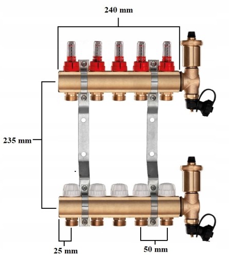 Rozdzielacz do podłogówki mosiężny z zestawem odpowietrzającym na 5 obwodów