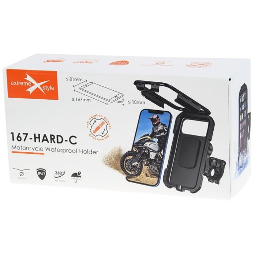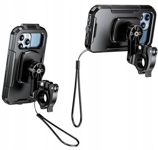 - Uchwyty są wodoodporne i posiadają wewnętrzną membranę, chroniącą telefon przed deszczem, zachlapaniem i kurzem. Choć nie są całkowicie wodoszczelne, zapewniają skuteczną ochronę podczas większości warunków pogodowych.