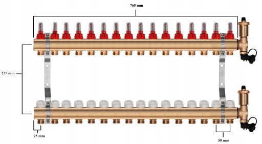 Rozdzielacz do podłogówki mosiężny z zestawem odpowietrzającym na 16 obwodów