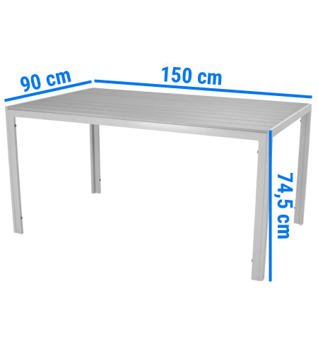Blat stołu ogrodowego składa się z desek kompozytowych WPC wykonanych z polistyrenu PS. Jest odporny na uszkodzenia i łatwy w czyszczeniu, wystarczy go przetrzeć wilgotną ściereczką.