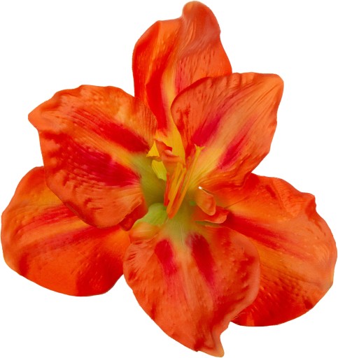 Oferta przedstawia dużą główkę amarylis wyrobowy. Produkt został wykonany z wysokiej jakości materiału. Główka jest w kolorze pomarańczowym. Na odwrocie posiada posiada miejsce na drut wyrobowy lub łodygę. Kwiat idealny do dekoracji, lub kompozycji florystycznych. Na innej naszej aukcji duży wybór łodyg i liści.
