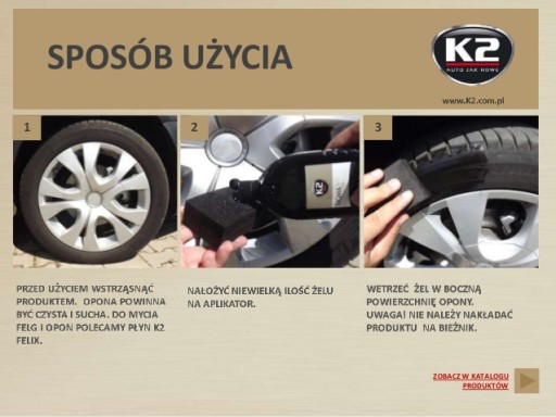 Czarne i lśniące opony to doskonałe dopełnienie idealnie wyglądającego auta. Inspirowani tą ideą stworzyliśmy wyjątkowy produkt - Czernidło do opon K2 SIGMA, nadający gumie prawdziwie spektakularny wygląd.