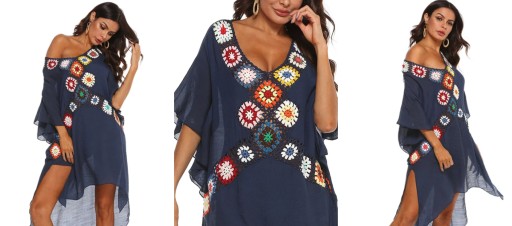 Modna w tym sezonie narzuta plażowa w kolorze granatowym z haftem.