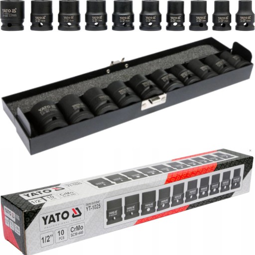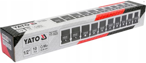 Nasadki udarowe Yato krótkie - komplet 10 kluczy nasadowych. Specjalistyczne nasadki udarowe, współpracują z urządzeniami pneumatycznymi, które pracują w bardzo ciężkich warunkach pod zmiennymi obciążeniami.