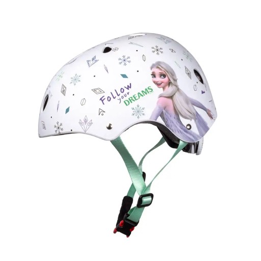 Na zewnątrz wykonany jest z trwałej i wytrzymałej powłoki ABS, wewnątrz znajduje się absorbująca uderzenia pianka EPS. Kask ozdobiono kolorowymi wzorami przedstawiającymi bohaterów z bajek Disney.