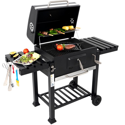 DUŻY GRILL OGRODOWY NA BRYKIET I WĘGIEL Z ŻELIWNYM RUSZTEM