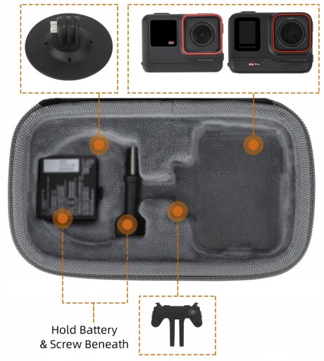 Wszystkie przegrody wewnątrz pokrowca zostały zaprojektowane tak aby idealnie pasowały pod kamerę Insta360 Ace / Ace Pro, dzięki czemu jego budowa jest bardzo kompaktowa i lekka.