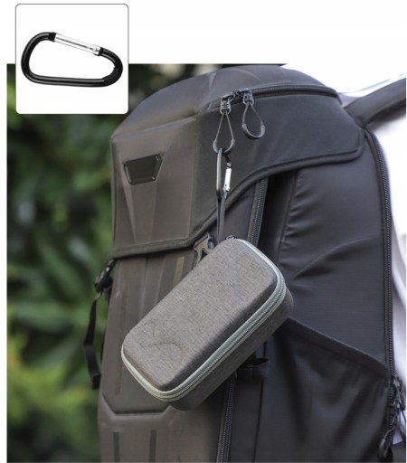 Futerał posiada pasek i karabińczyk w zestawie pozwalający na zawieszenie futerału przy plecaku lub torbie.