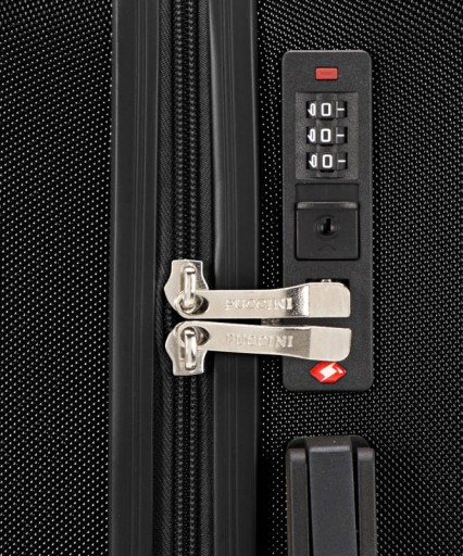 Regulowana prowadnica z blokadą zapewnia idealne dopasowanie i bezpieczeństwo podczas transportu. Cztery solidne koła zapewniają łatwą podróż, nawet po trudnych nawierzchniach. Zamek szyfrowy i system TSA chronią zawartość bagażu. Wygodne uchwyty są nie tylko praktyczne, ale też odpornie na uszkodzenia. Pasy spinające, kieszeń na suwak i przegroda utrzymują porządek. Wytrzymały zamek zapewnia dodatkowe bezpieczeństwo. Stopki ochronne to kolejny praktyczny element. Podszewka z logo PUCCINI to elegancki akcent na wysoką jakość. Walizki są super lekkie, co pozwala na więcej bagażu.