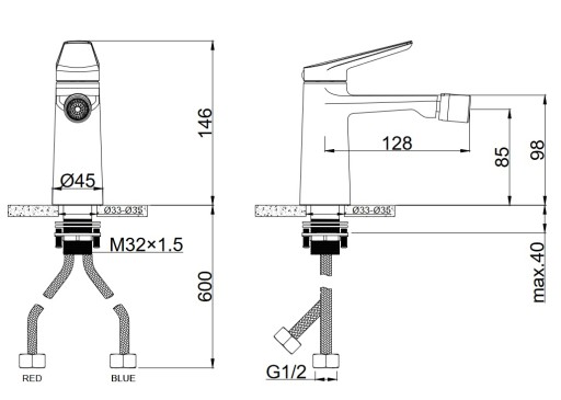 ✅Zasięg wylewki od środka baterii: 128 mm