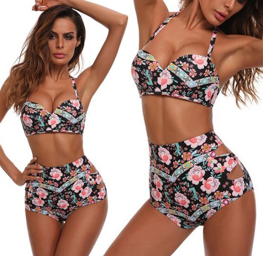 Kobiecy i niezwykle gustowny komplet kąpielowy składający się z biustonosza oraz fig z wysokim stanem. Najmodniejszy w tym sezonie model, uwielbiany przez kobiety! Poczuj się wyjątkowo na plaży!