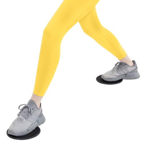 Dyski poślizgowe do treningu składają się z dwóch płyt wykonanych z wytrzymałego tworzywa. Jedna strona gładko sunie po podłożu, a druga zapewnia wysoki poziom stabilności i kontrolę nad każdym ruchem. Kładąc dłonie lub stopy na nich, możesz wykonywać płynne ruchy ślizgowe w różnych kierunkach po dowolnym podłożu (z wyjątkiem podłoża gumowego). Olbrzymim plusem dysków do ćwiczeń jest to, że nie musisz stosować żadnych obciążeń – trenujesz z wykorzystaniem ciężaru własnego ciała bez nadwyrężania stawów.
