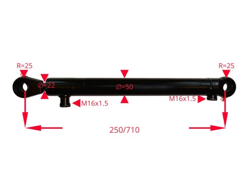 - Długość całkowita siłownika po rozłożeniu: 710mm