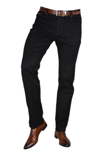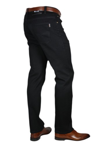 Spodnie męskie klasyczne wykonane z miękkiego rozciągliwego materiału ze standardowym stanem i prostą nogawką. Jest to najczęściej wybierany model spodni przez mężczyzn. Wykonane z wysokiej jakości jak i zarazem trwałej i mocnej bawełnianej tkaniny w jednolitym kolorze czarnym. Zapinane są na zamek błyskawiczny oraz metalowy guzik sygnowany logiem firmy. Z przodu mają dwie pojemne kieszenie oraz mniejszą kieszonkę zwaną bilonówką, z tyłu dwie klasyczne kieszenie naszywane jak w typowych spodniach. W pasie szlufki umożliwiające założenie paska. Jest to fason typu REGULAR czyli model z prostymi nogawkami i standardowym stanem. Klasyczne a jednocześnie zawsze modne spodnie. Idealne nie tylko na co dzień. Jest to uniwersalny model spodni , modny i sprawdzony krój który doskonale komponuje się z pozostałymi częściami garderoby. Odpowiednio dopasowane części garderoby sprawią że będziesz ubrany na każdą okazje. Model ten rewelacyjnie wygląda w połączeniu z koszulą z długim lub krótkim rękawem, oraz do koszulki polo lub t-shirtu czy swetra. Ogromną zaletą spodni z dodatkiem elastanu jest ich niewątpliwa wygoda oraz komfort podczas noszenia- są bardzo wygodne ! Spodnie dopasowują się do każdej sylwetki . W trakcie użytkowania nie ograniczają ruchów . Idealny wybór spodni dla mężczyzn ceniących klasyczne zarazem nowoczesne rozwiązania oraz satysfakcje z własnego wyglądu.