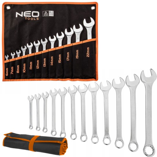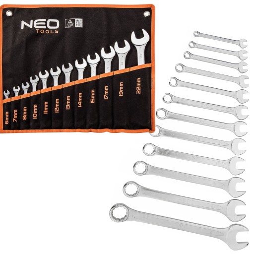 NEO НАБОР КОМБИНИРОВАННЫХ КЛЮЧЕЙ 12 ШТ. 6-22 мм ПЛИТА 09-752 ПЛОСКАЯ