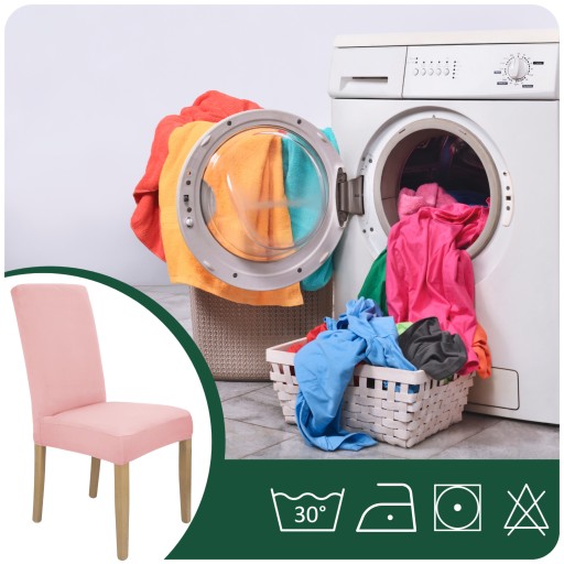 Pokrowca nie trzeba pracować. Po nałożeniu go na krzesło wystarczy przejechać ręką by dobrze się ułożył. Jeśli ktoś uważa, że potrzebuje prasowania wówczas polecamy niską temperaturę.