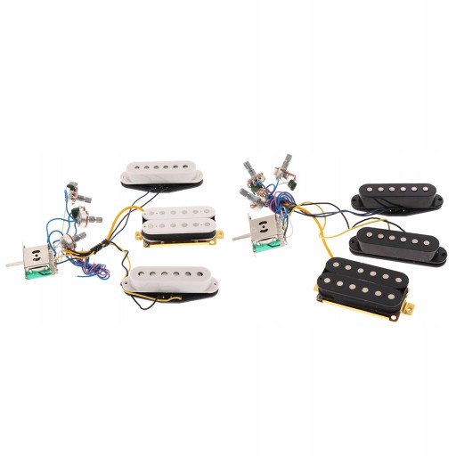 Zawiera 2 przetworniki z pojedynczą cewką, 1 przetwornik humbucker, 3-pozycyjny przełącznik, 3 potencjometry, 1 pokrętło głośności, 2 pokrętła tonów i śruby maskujące