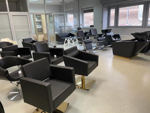 - Fotel fryzjerski z pompą hydrauliczną, z możliwością zablokowania i regulacji wysokości z siedzącym na fotelu klientem