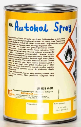 Zastosowanie: Klej AutoKol Spray przeznaczony jest do klejenia podsufitki, boczków, przyklejania pianek, wygłuszeń, wykładzin, materiałów tekstylnych i drewnopochodnych oraz skór naturalnych i niektórych syntetycznych ze sobą oraz z blachą. Idealnie nadaje się do prac tuningowych wnętrz samochodowych. Może Autokol Spraybyć stosowany również w przemyśle meblowym do klejenia skórzanych i tekstylnych elementów tapicerki. Jak również do przyklejania różnego typu materiałów do płaskich powierzchni. Podklejania tapet, list, forniru etc. Charakterystyka kleju: Wygląd: lepka jasno-żółta ciecz z wyraźną zawartością jednorodnie zdyspergowanych jasnych wypełniaczy i stabilizatorów.
