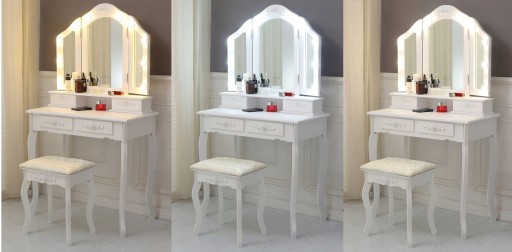 Toaletka posiada ruchome, potrójne lustro z 10 lampkami LED z możliwością zmiany barw oświetlenia, oraz z możliwością rozjaśniania i przyciemniania.