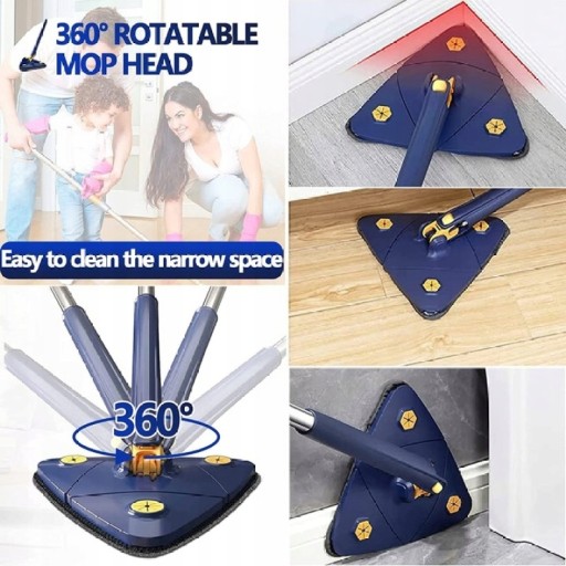 Trójkątny kształt mopa pozwala na dotarcie do trudno dostępnych miejsc, które ciężko wyczyścić klasycznymi produktami do sprzątania.