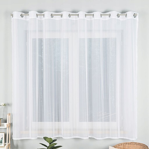 Gotowa do powieszenia, elegancka firanka na przelotkach.