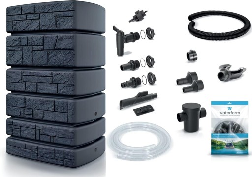 Zbiornik Tower Stone łączy w sobie design i funkcjonalność, będąc nowoczesnym zasobnikiem na wodę deszczową. Jego unikalna, posegmentowana konstrukcja zainspirowana strukturą skały łupkowej, nie tylko pięknie komponuje się z ogrodowym krajobrazem, ale także harmonizuje z architekturą otoczenia. Dostępny w różnych wariantach, zbiornik może przechowywać od 350 do 500 litrów wody, dzięki czemu stanowi efektywne rozwiązanie do gromadzenia cennego zasobu deszczowego.