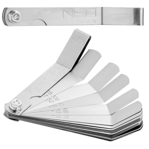 Szczelinomierz 16 listków odgiętych (0.127 – 0.508 mm) 65MN/stal nierdzewna 11-192 marki NEO to praktyczne narzędzie umożliwiające zmierzenie odległości między dwoma elementami konstrukcji w sytuacji, gdy niemożliwe jest użycie innego przyrządu pomiarowego. Posiada 16 odgiętych listków o grubości od 0.127 do 0.508 mm, z których wyniki można łatwo odczytać nawet po wycięciu narzędzia ze szczeliny - dzięki czemu stosuje się go również w sytuacjach, gdzie mamy ograniczoną przestrzeń. Pozwala na przeprowadzenie pomiarów luzów łożysk czy luzów zaworowych silnika. Z kolei działkowiec może samodzielnie sprawdzić oraz wyregulować przerwę na elektrodach świecy zapłonowej od kosiarki czy pilarki spalinowej. Szczelinomierz marki NEO wykonany został z solidnych stali 65 MN oraz stali nierdzewnej. Doskonale sprawdzi się w warsztatach samochodowych oraz w garażach użytkowników pojazdów mechanicznych.
