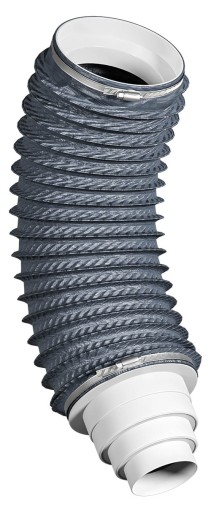 ✅ Wyposażony jest w dwie metalowe obejmy, z których jedna stanowi trwałe połączenie z kominkiem, a druga umiejscowiona jest na połączeniu przewodu elastycznego z pierścieniem redukującym.
