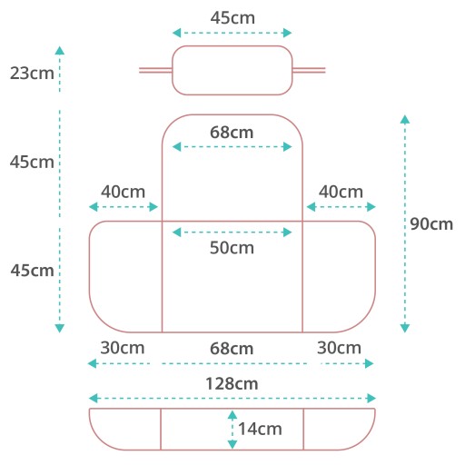 Poduszka składa się z czterech części połączonych ze sobą, tak aby idealnie wpasowywała się w huśtawkę. Dzięki temu każdy jej element idealnie otula ciało, co daje niesamowity komfort korzystania z huśtawki.