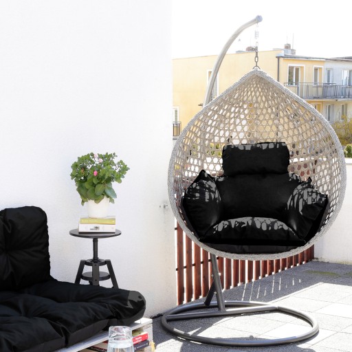 Korzystanie z fotela wiszącego może być jeszcze wygodniejsze, kiedy na siedzisku pojawi się pasująca i miękka poduszka.