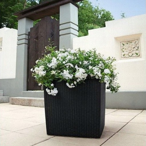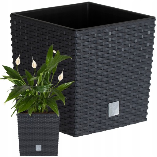 БОЛЬШОЙ УЛИЧНЫЙ ЦВЕТОЧНЫЙ ГОРШОК ИЗ РОТЕГА, антрацит, СО ВСТАВКОЙ В ТЕРРАСНУЮ КРЫШКУ