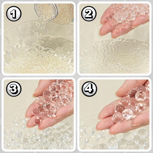 ✔️Prosty Proces Aktywacji✔️Nawodnij kulki wodą i odczekaj, aż nabiorą objętości (dla 500 sztuk kulek potrzebujesz około 1 litra wody). Po upływie około 4 godzin kulki nasiąkną wodą i osiągną rozmiar około 7-11 mm. Następnie, po napełnieniu, usuń nadmiar wody.