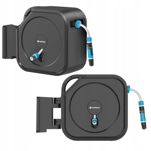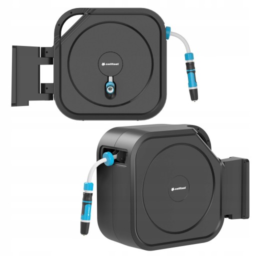 Wieszak ścienny zapewnia stabilność zwijacza i umożliwia jego montaż w wąskich przejściach. Dodatkowo pozwala na jego obrót w zakresie 180°, ułatwiając tym nawadnianie ogrodu na całej jego powierzchni. Takie rozwiązanie przyczynia się do zwiększenia wydajności i efektywności prac ogrodowych.