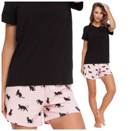 PIŻAMA DAMSKA DWUCZĘŚCIOWA BAWEŁNIANA W KOTKI SPODENKI KRÓTKI RĘKAW MORAJ M