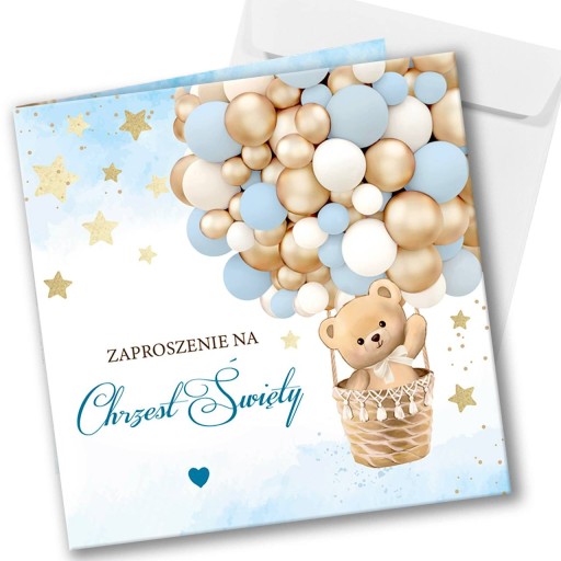 ZAPROSZENIA na Chrzest Miś Boho Blue 1 szt+koperta