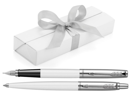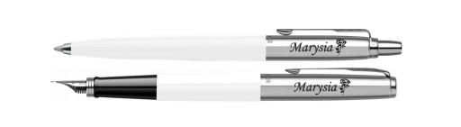 ZESTAW PARKER JOTTER BIAŁE PIÓRO I DŁUGOPIS Z GRAWEREM W ETUI NA KOMUNIĘ