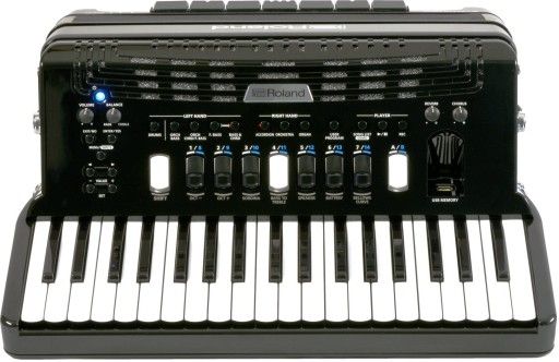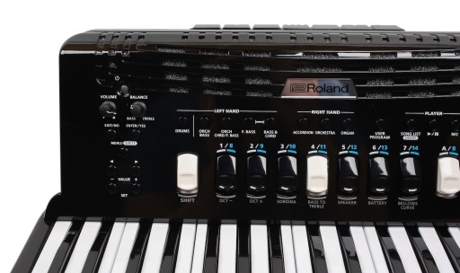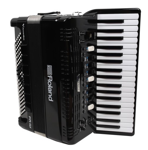 Ćwiczenia. Próba. Studio. Estrada. Akordeon FR-4x firmy Roland jest elastyczny, aby wspierać muzyka wszędzie tam, gdzie gra. Gniazdo słuchawkowe umożliwia ćwiczenie w domu bez niepokojenia sąsiadów, a gdy jesteś w drodze, mocny system nagłośnienia z dwoma głośnikami i głośnikiem wysokotonowym dostarczają wielki, pełnozakresowy dźwięk. Ambitni twórcy muzyki mogą nawet podłączyć zewnętrzne urządzenia MIDI, takie jak moduł BK-7m firmy Roland, aby używać sterowanego akompaniamentu. Muzycy koncertujący docenią fakt, że akordeon jest w pełni przygotowany do używania na estradzie, zapewniając bezpośrednią łączność z systemem nagłośnienia danej imprezy poprzez gniazdo wyjścia liniowego i eliminując bóle głowy, spowodowane próbami obstawiania mikrofonami tradycyjnego akordeonu.