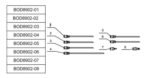 - Flexible nylon: 5 x 700 mm, 6 x 700 mm, 7 x 1000 mm, 8 x 700 mm
