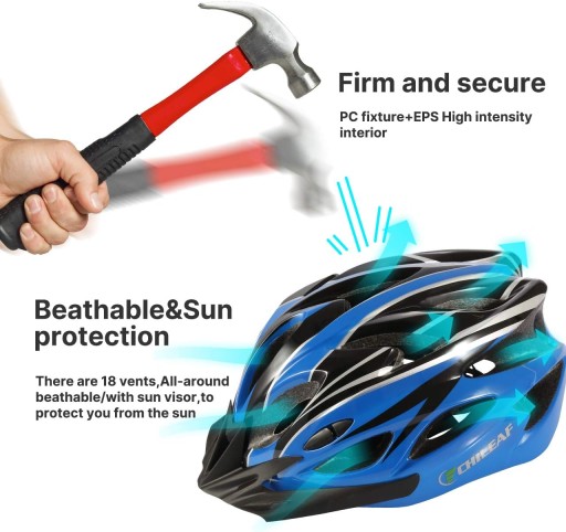 - 18 otworów wentylacyjnych, wszechstronna oddychalność - kask rowerowy CHILEAF wykonany z lekkiego materiału, wewnętrzna wkładka wykonana z oddychającego materiału zapewnia wygodę noszenia. Zastosowanie specjalistycznej konstrukcji aerodynamicznej i wentylacyjnej umożliwia przepływ powietrza przez kask rowerowy, zapewnia chłodny i wygodny uczucie podczas jazdy.