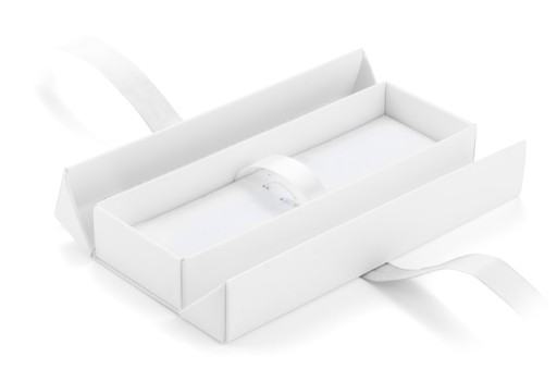 Zamykane za pomocą ozdobnej jasnosrebrnej wstążki, którą można zawiązać w ozdobną kokardę.